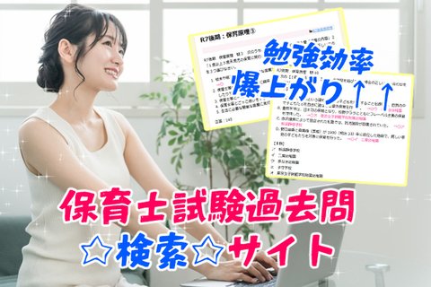 「保育士試験過去問☆検索☆サイト」で 1500問以上の過去問をチェックし、勉強効率爆上がり↑↑ 過去5年の過去問から、出題傾向チェックが超簡単にできる!
